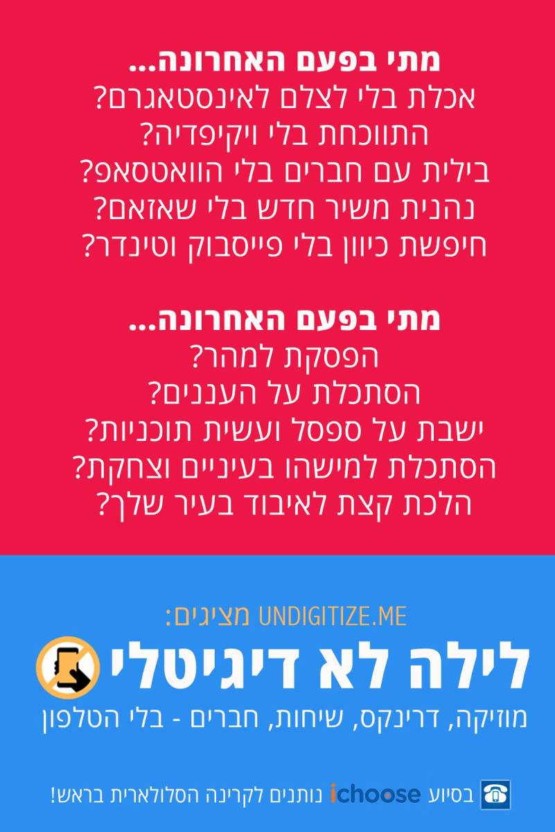 Image Posted by Lior Frenkel Posted on March 5, 2018 Posted in The Day of Unplugging #1 Tel-Aviv Comments Leave a comment 74 Share this: Click to email a link to a friend (Opens in new window) Email Click to share on X (Opens in new window) X Click to share on Facebook (Opens in new window) Facebook Click to share on LinkedIn (Opens in new window) LinkedIn Like Loading... Size: 1181 × 1770 Trackbacks are closed, but you can post a comment.